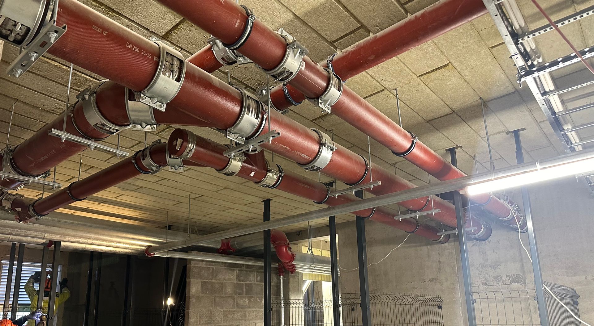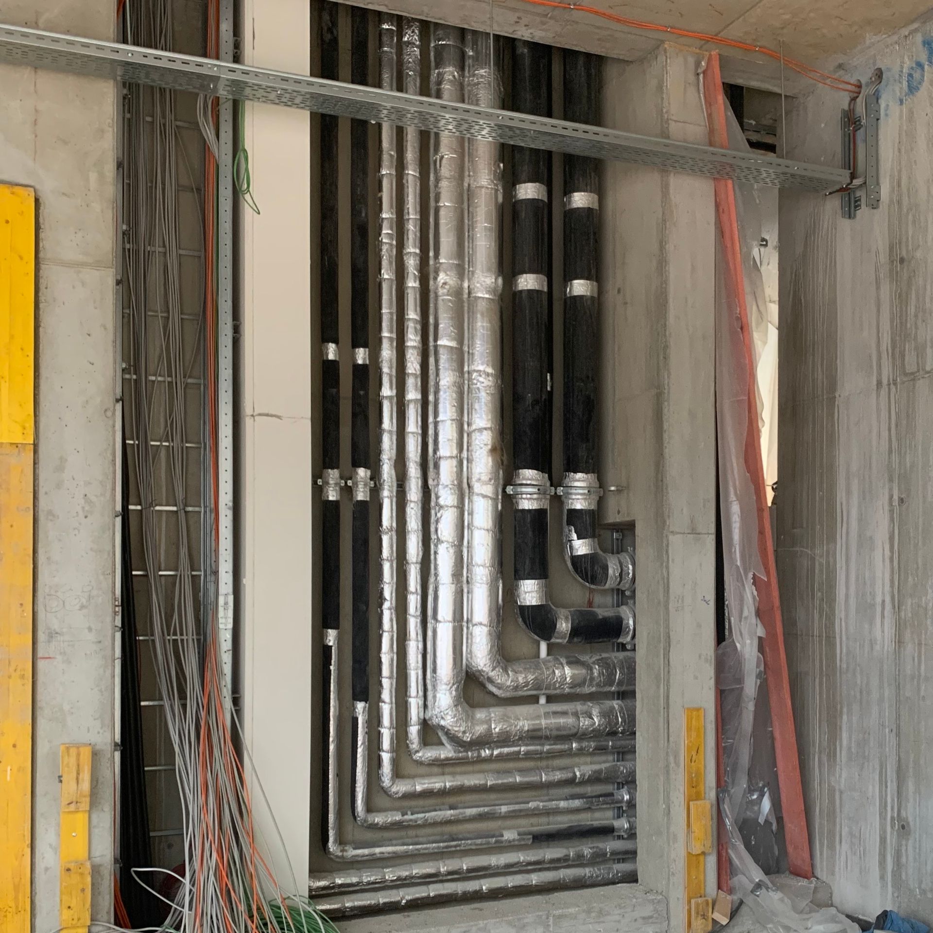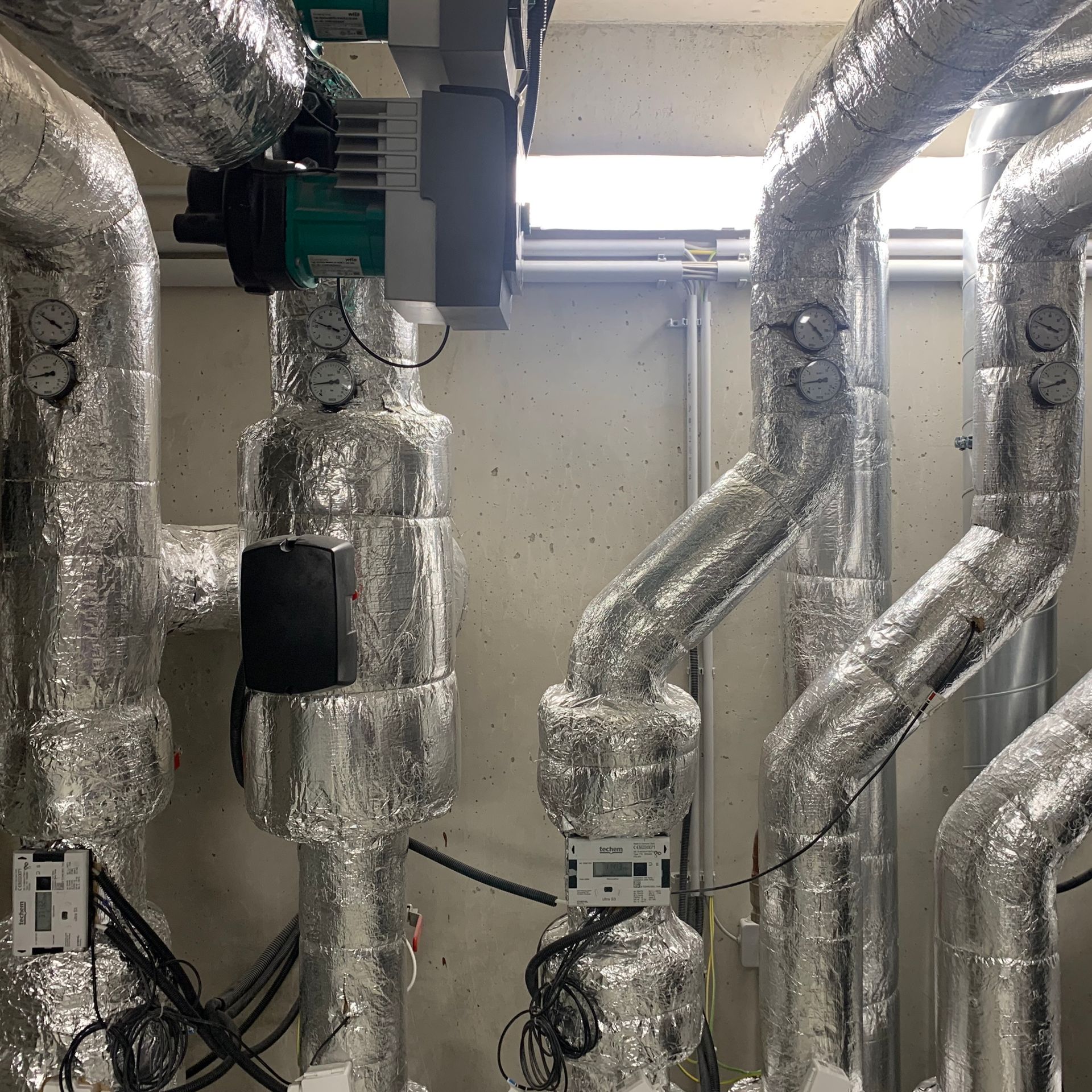 Prozess der Einbau einer Heizstation für ein Einkaufszentrum.
