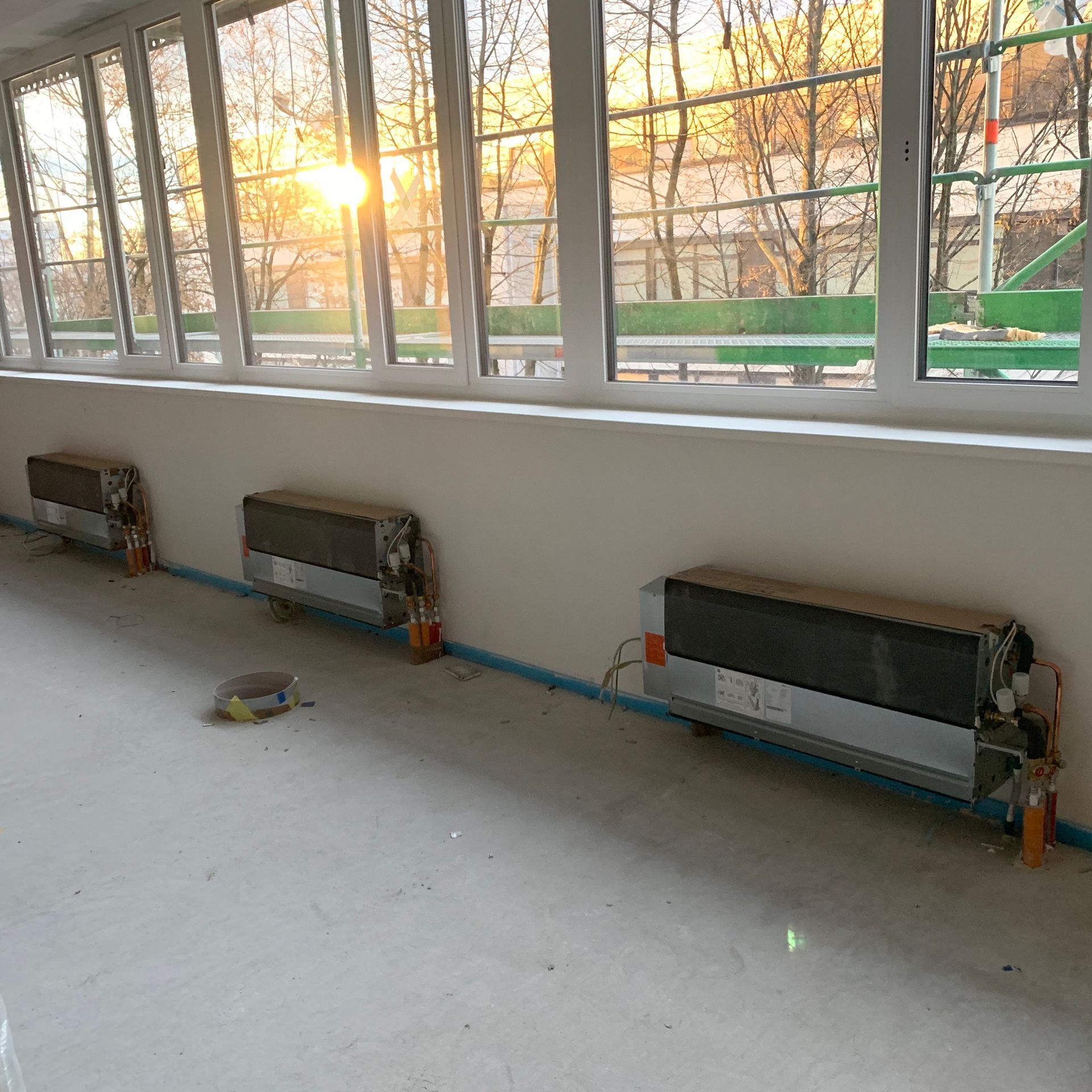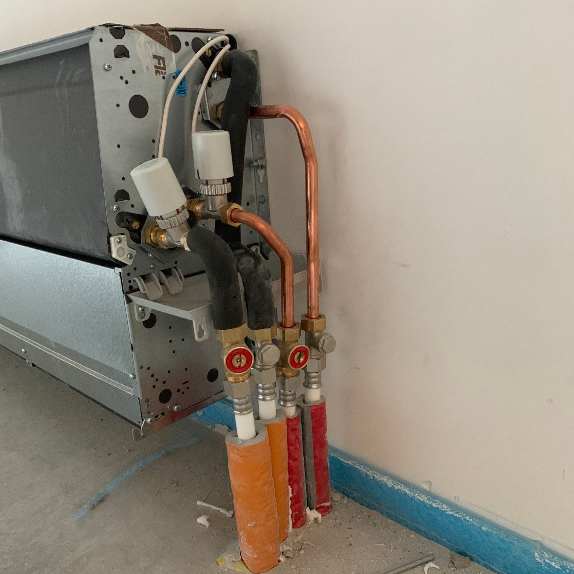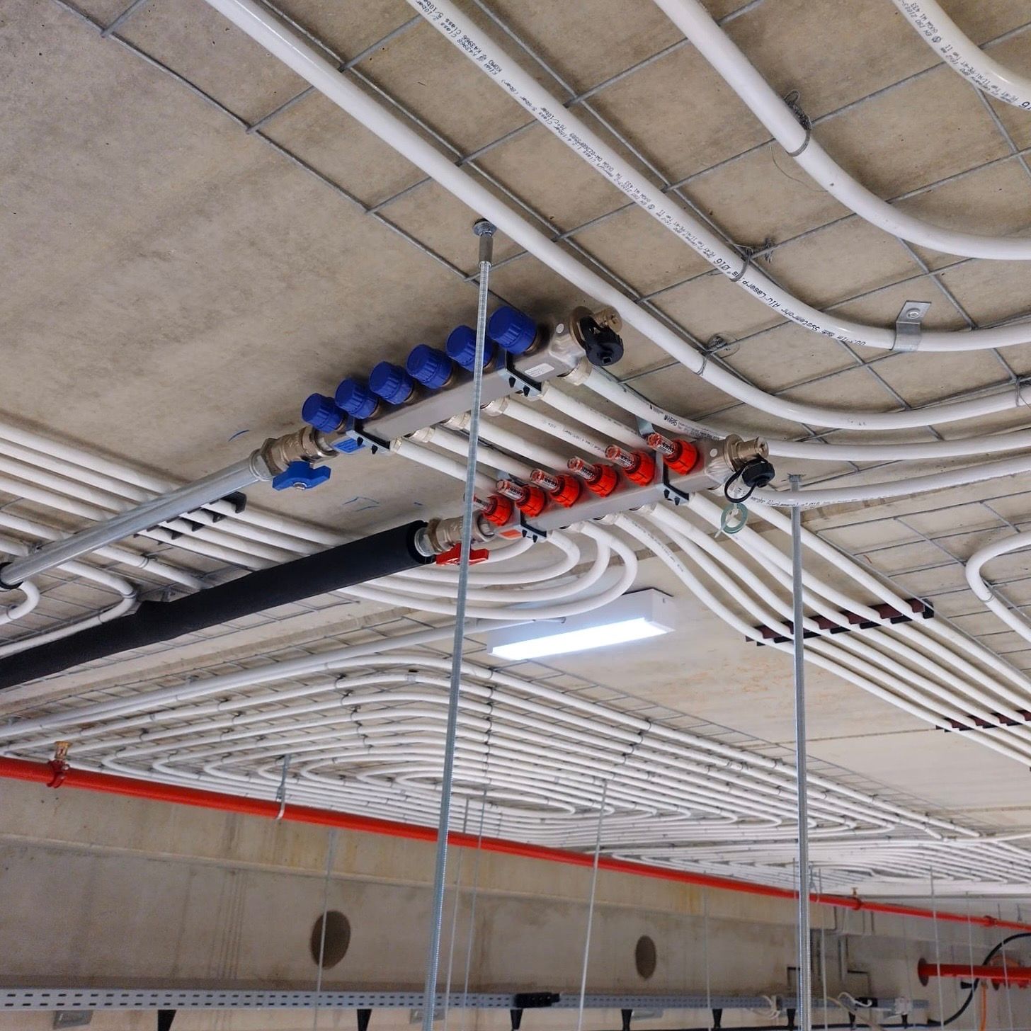 Prozess der Einbau einer Heizstation für ein Einkaufszentrum.