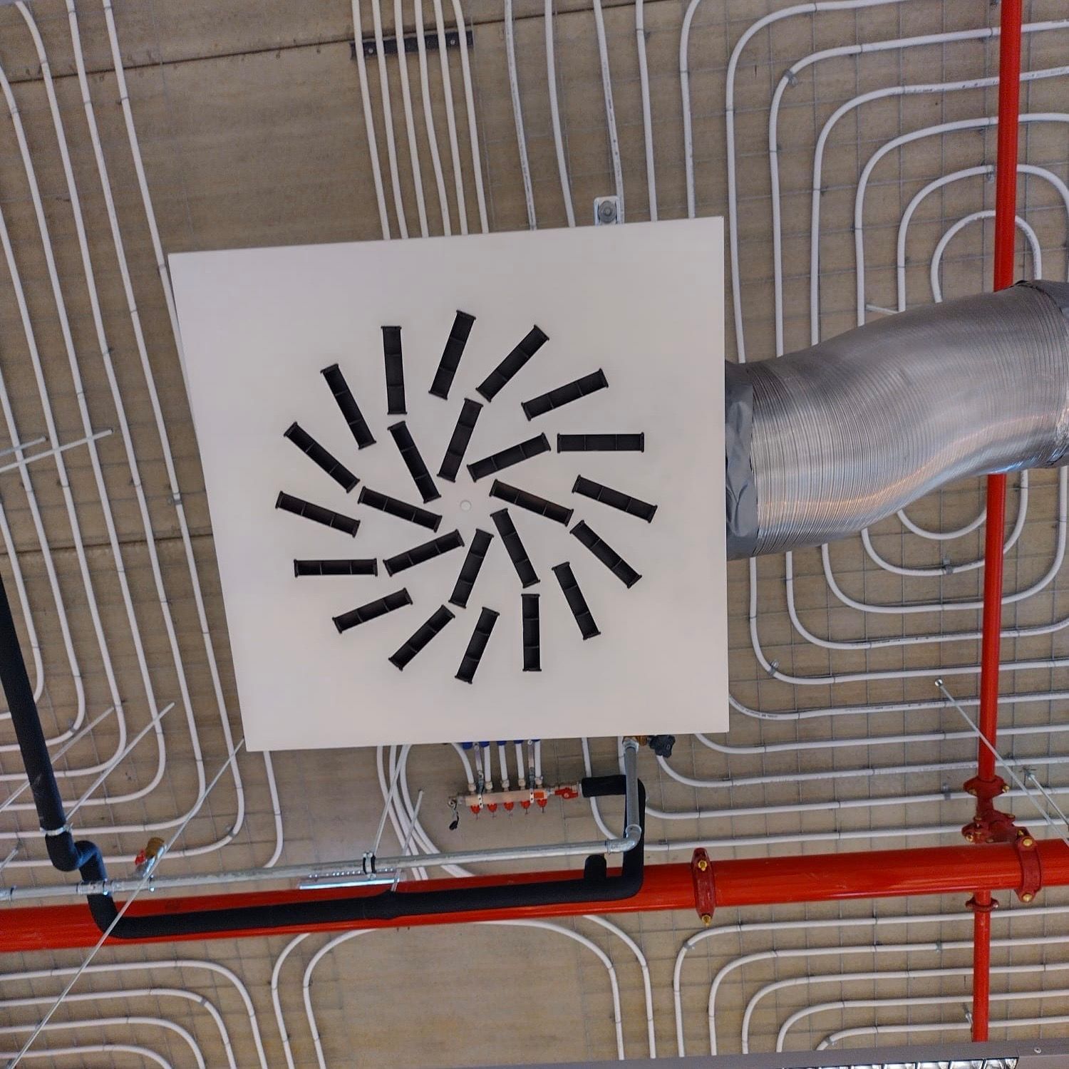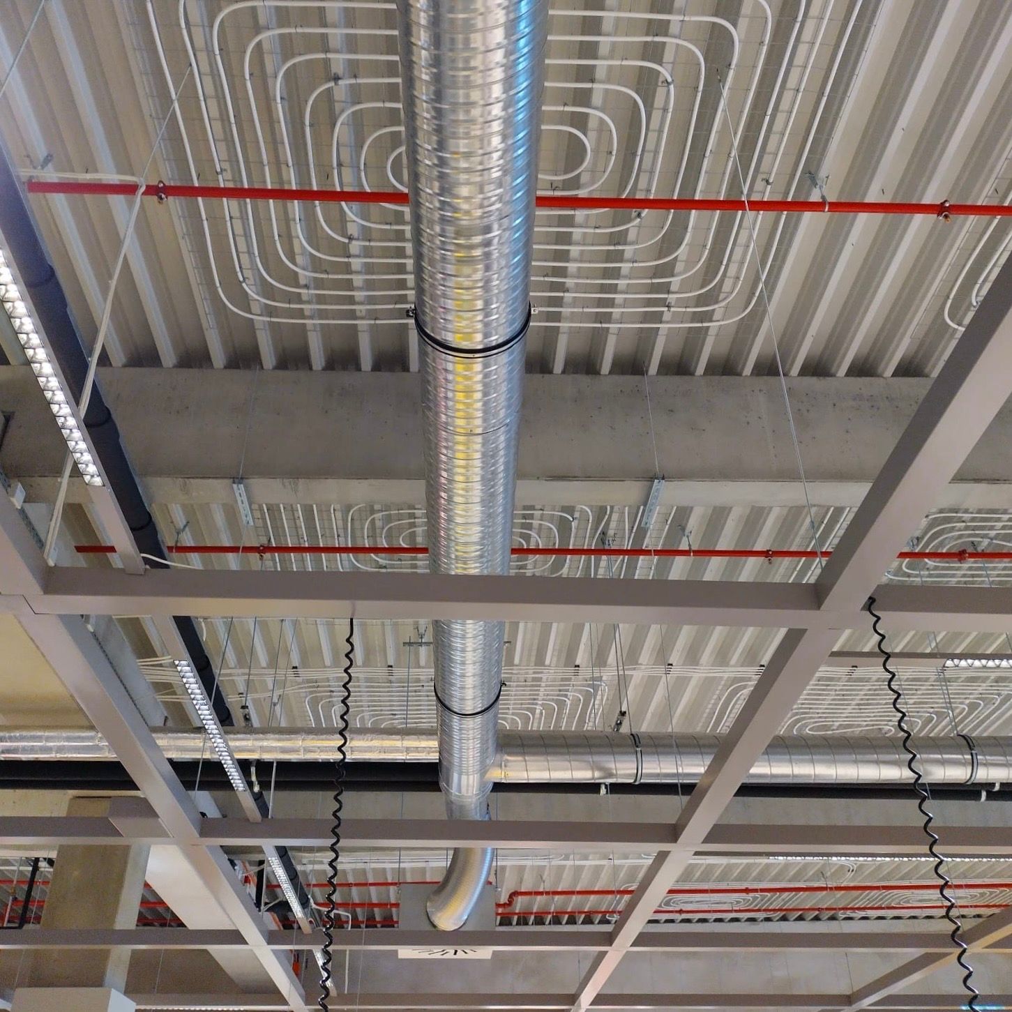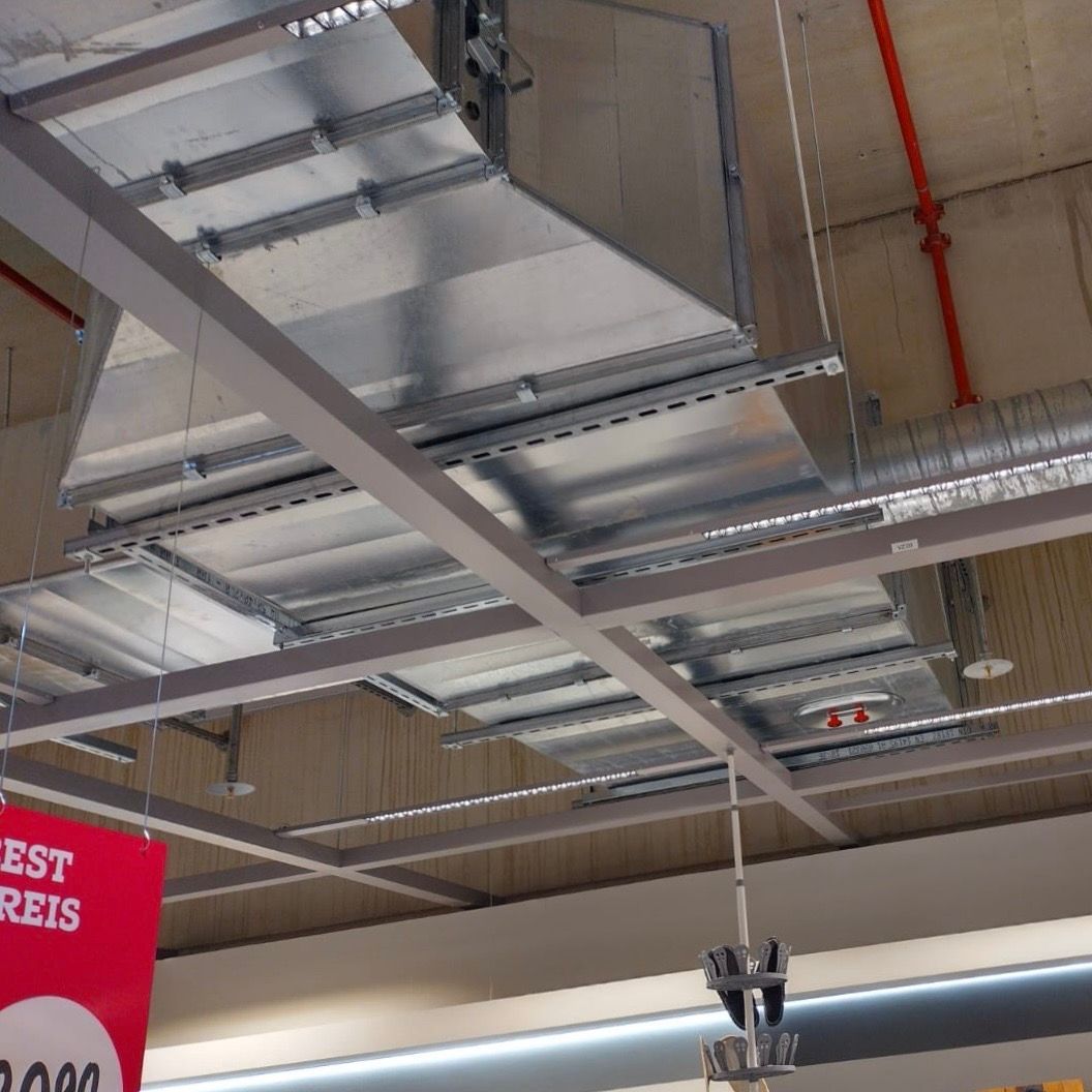 System von Warm-/Kaltdecken und Lüftung im Einkaufszentrum
