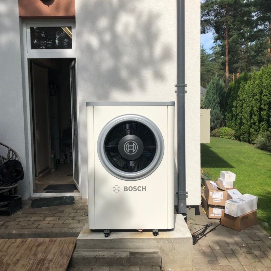 Eine Wärmepumpe in einem Einfamilienhaus, die Außenluft in Heizwärme umwandelt. Effizient und umweltfreundlich, ideal für moderne, nachhaltige Heizlösungen.